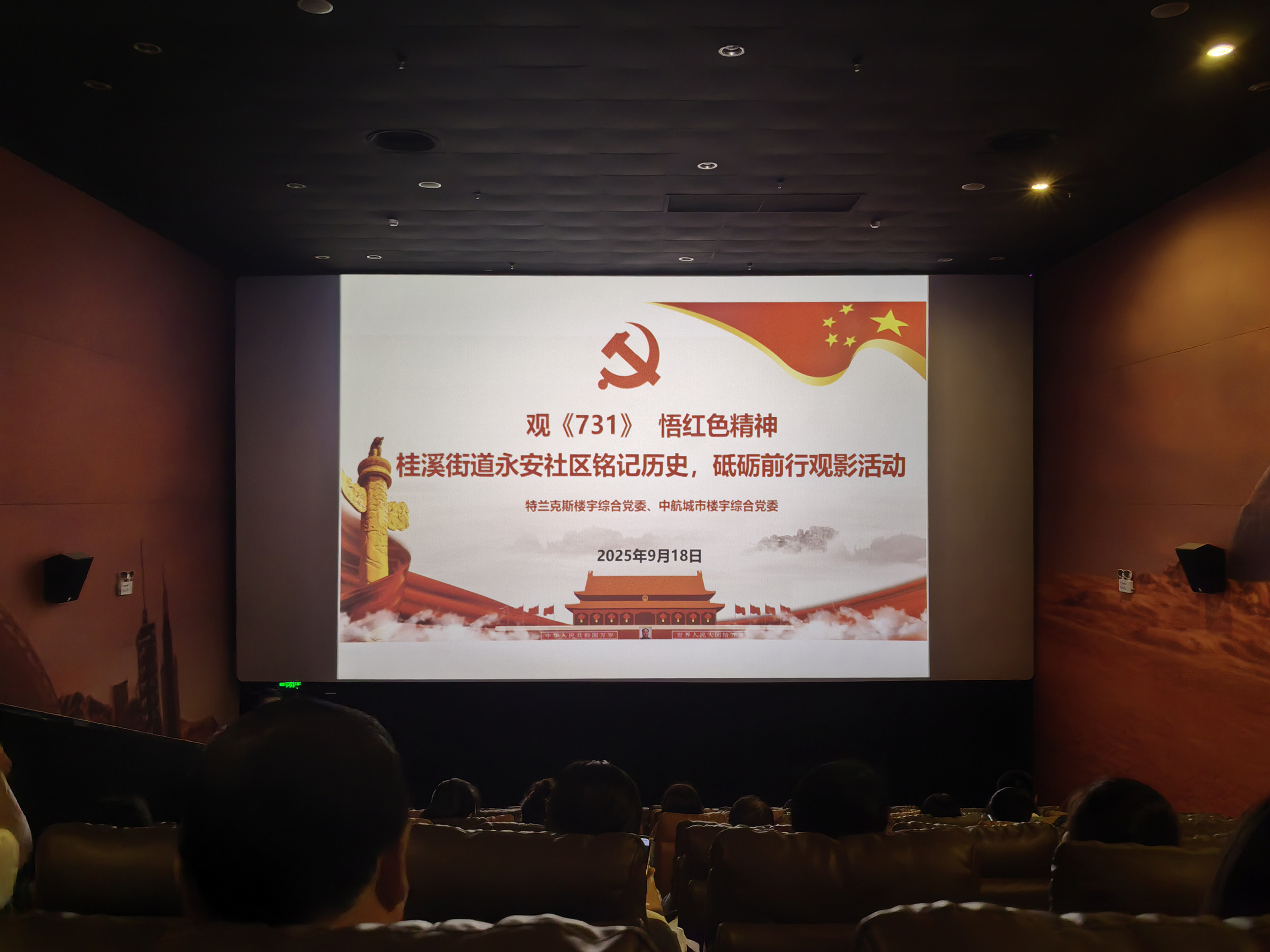 9月18日,为铭记历史,传承红色精神,金控人力党支部党员和职工代表参加了桂溪街道永安社区组织的“观《731》悟红色精神——铭记历史,砥砺前行”观影活动。